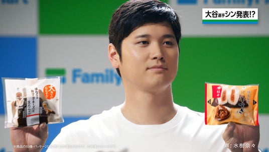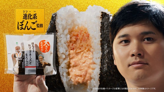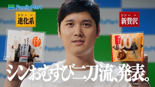 また、今年2月に当社の“おむすびアンバサダー”に就任した大谷翔平選手を起用した新キービジュアルおよび、今回発売する”シン”おむすびを両手に持ち、「シンおむすび、二刀流」を発表する記者会見風の新CMを放映いたします。この機会に、名店の味わいを気軽に楽しめる“シンおむすび”と、大谷選手の新ビジュアルにもご注目ください。