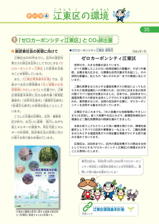 江東区では、2050年までに温室効果ガスの排出量を全体としてゼロにする「ゼロカーボンシティ江東区」の実現を目指しています。その取り組みの一環として、環境への意識を高めるため、令和4年度から23区初の取り組みとなる「江東区環境検定」を実施しています。