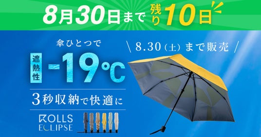 猛暑対策の新定番と使いやすさを兼ね備えたROLLS最新作日傘早期割引購入がいよいよラストチャンス!Makuakeは8月30日(土)まで。