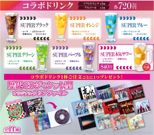 ドリンク :メンバーカラーをイメージした5種類のコラボソフトドリンク 各720円(税込)