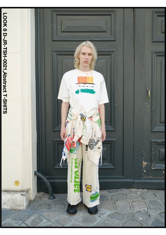 様々なもの、こと、ひとを繋げていく今回のコラボコンセプトを象徴するような、グラフィックとして、移動としてのレールだけではなく、’着る物語’を提案します。レールの沿線には様々な街が、暮らしがある。そんな風景も纏いながら、日本を超えて世界中に共通する移動というインフラを足元で支えたレールが人々の暮らしに根付き、服に落とし込まれ長く愛される1着となっていくことを願っています。