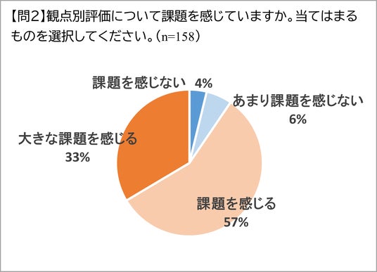 続いて、「観点別評価に課題を感じているか」をうかがったところ、全体の9割が観点別評価に「課題を感じる」と回答しました。こちらも、問1と同様に、2023年とほぼ同様の結果でした。(2023年時は「課題を感じる」が92%、「感じない」が8%)