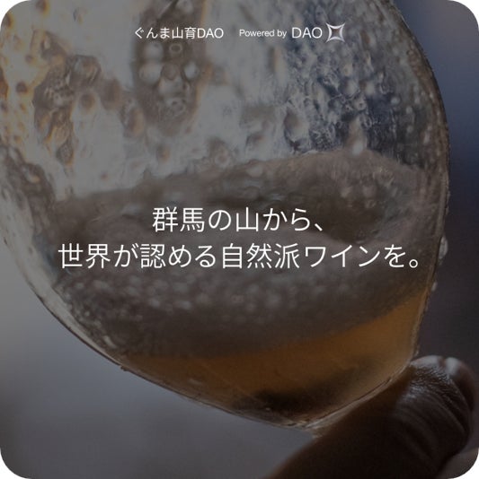 群馬県庁、ガイアックス、チモリ合同会社が協働して発足した株式会社ぐんま山育DAO。株式会社型DAOの仕組みを活用することで事業収益が確立する前に必要な資金を確保し、さらに、出資者が事業の成功に積極的に関与することで、事業の成長を加速させるナチュラルワインの醸造・販売事業です。