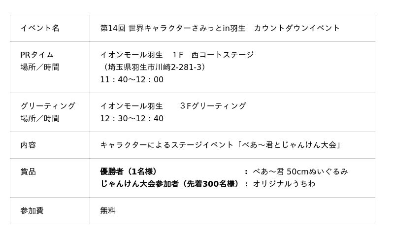 8月23日(土曜)第14回 世界キャラクターさみっとin羽生カウントダウンイベント タイムスケジュール決定