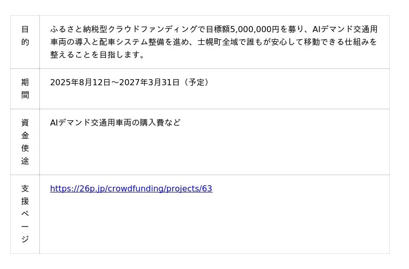 - AIデマンド交通の車両購入クラウドファンディングを実施