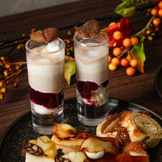 ■飲むモンブラン秋スイーツの代表格であるモンブランを、ひと口ごとに新鮮な驚きを感じられる“飲む”スタイルでご提供します。なめらかなクリームは口当たりが軽く、それでいてコク深い味わい。さらにカシスの爽やかな酸味を加えることで、甘さに奥行きが生まれます。従来のモンブランとは異なる食感と風味が楽しめるため、スイーツ好きの方はもちろん、軽やかなデザートを求める方にもおすすめです。