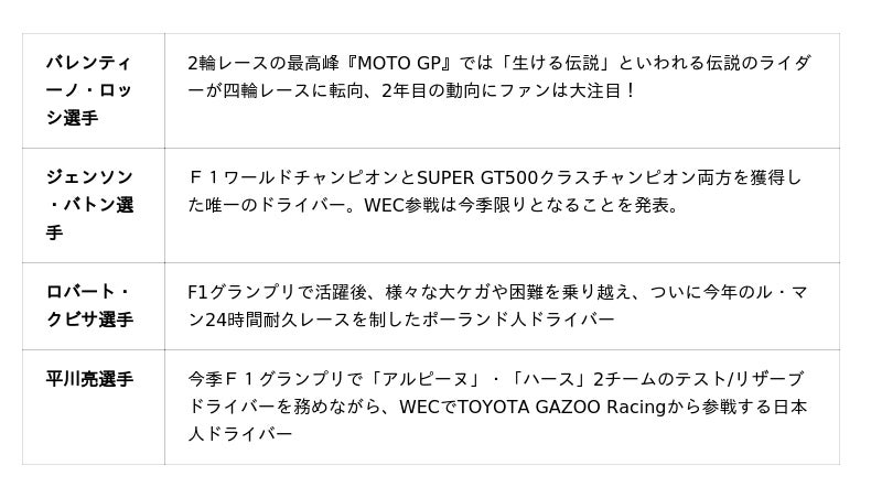 ドライバーラインアップは、耐久レースの歴史において過去最高レベルの顔ぶれ!