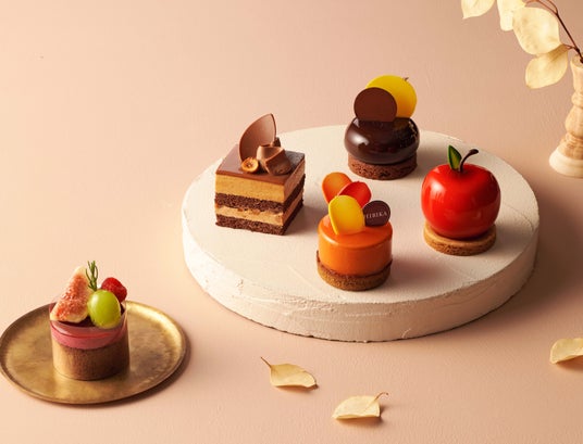秋色に染まる木々を映した、洋梨入りのジュレとショコラキャラメルムースのケーキ「秋色(あきいろ)」や、紅玉りんごのムース、アールグレイとショコラムースで仕上げた真っ赤に実った「林檎(りんご)」など、日本の美しい秋を愛でる彩り豊かなケーキをご用意いたします。
