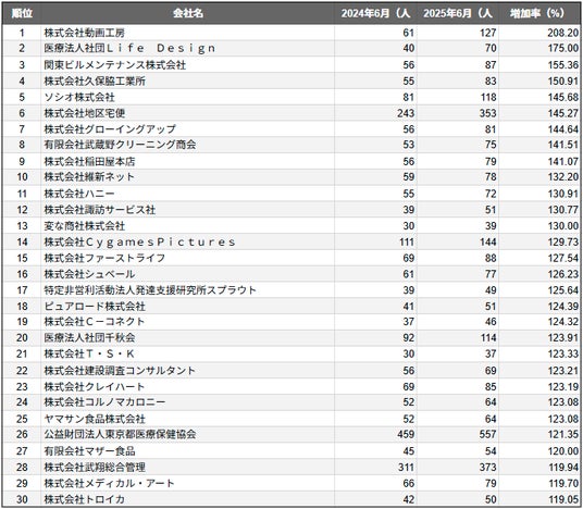 【2025年最新版】練馬区:従業員数増加率ランキングTOP30/SalesNow DBレポート