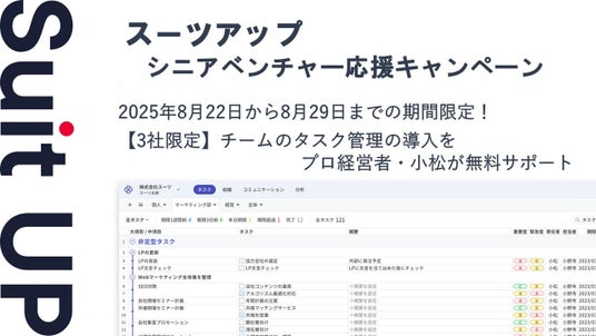 チームのタスク管理・プロジェクト管理ツール「スーツアップ」、シニアベンチャー応援キャンペーン