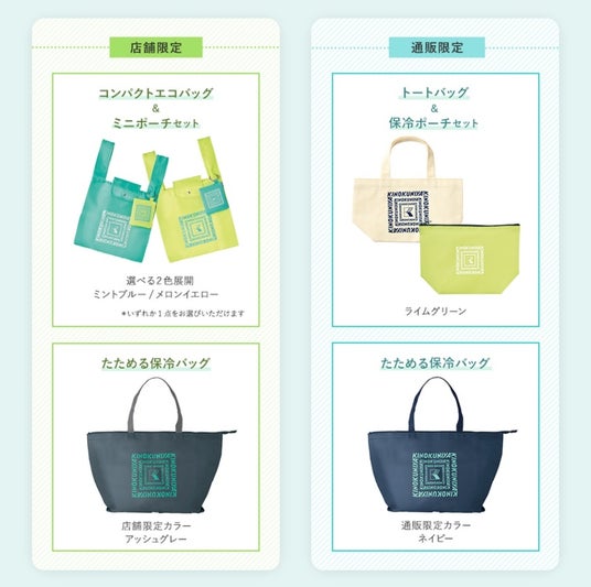 キャンペーン第1弾は、当社の製品を一定金額以上ご購入いただいたお客様に、株式会社紀ノ國屋(以下、紀ノ国屋)とのコラボレーションによるオリジナルバッグを通信販売と直営店舗でそれぞれプレゼントします※。