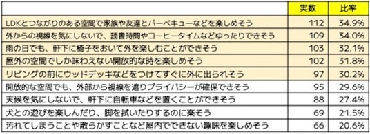 1)LDKとつながりのある空間で家族や友達とバーベキューなどを楽しめそう(34.9%)