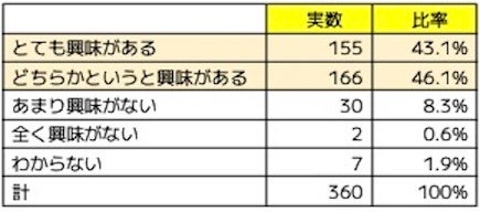 平屋を希望する方は「ミッドテリア空間」について、「とても興味がある」(43.1%)+「どちらかというと興味がある」(46.1%)=合算すると89.2%に達しニーズの高さが判明