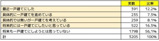※以下の調査は、最近一戸建てにした方、具体的に一戸建てを進めている方、具体的では無いが一戸