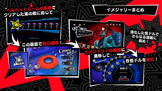 専用の育成素材「星屑の欠片」を集めることで、各種パラメーターなどの強化が可能になります。「星屑の欠片」は、“ベルベットルームの試練”の累計★獲得数に応じて、毎日獲得できます。