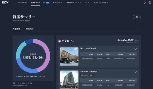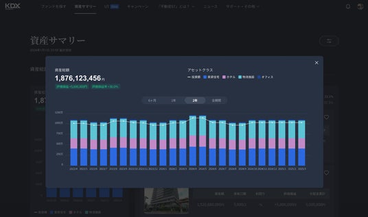 なお、このたびの当社証券口座との連携と同時に、「KDX STアプリ」にはKDX不動産STの資産推移や評価損益の表示機能が新たに追加され、さらに分配金も過去2年間に受け取った累計額も確認できるようになることから、投資成果の時系列での把握が可能となります。