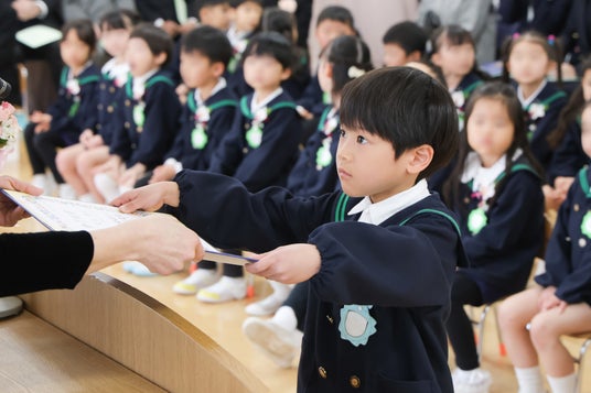 卒園式の証書授与です。名前を呼ばれ、大きく返事をし、しっかりと証書を受け取った息子。心も体も大きく成長した我が子に感動しました。通っていた毎日が走馬灯のように蘇り、涙が止まりませんでした。