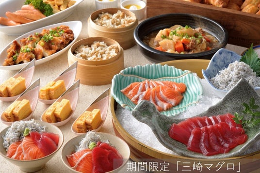 翌朝は、5階レストランDINING&BAR「BAYSIDE」(ダイニングアンドバーベイサイド)にて、和洋中40メニュー以上の朝食ビュッフェをご用意しております。なかでも人気の「三崎マグロ」は、お刺身や海鮮丼スタイルでお楽しみいただけるおすすめの一品です。