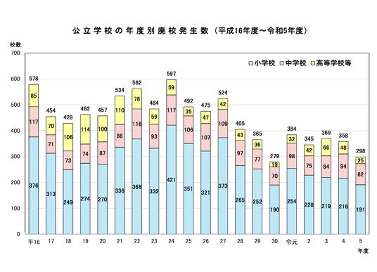 文部科学省の統計によると、少子化等の影響により、2004年度から2023年度に発生した廃校の累計数は8,850校にのぼり、年間平均で約450校が廃校になっています。そのうち約7割は学校や文化・福祉施設等として利活用が進んでいるものの、1,500校以上は活用用途が決まっていないのが現状です。