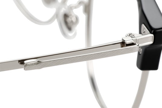 1. フロントサイドからテンプルにかけてチェックの彫金が施されている。