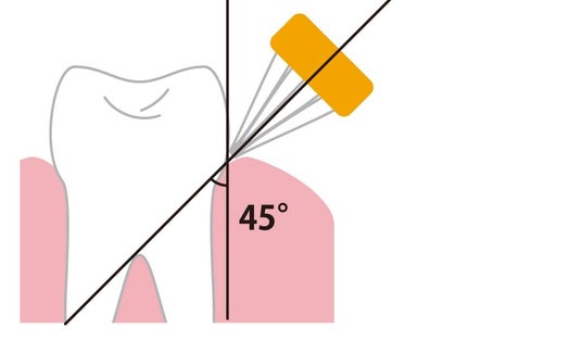 歯ブラシを歯ぐきに対して45度で磨くバス法