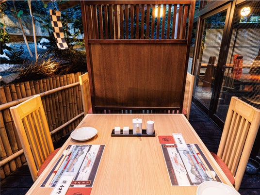 最大8名様までご利用いただけるテラス席は、親しい仲間との語らいにもぴったり。都会の喧騒を離れた、開放的な時間をお過ごしください。