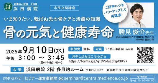 【ご好評につき再講演が決定!】浜田病院、9月10日(水)に“女性の健康”セミナーを開催 骨の元気と健康寿命 ~いま知りたい、骨ケアと治療の知識~
