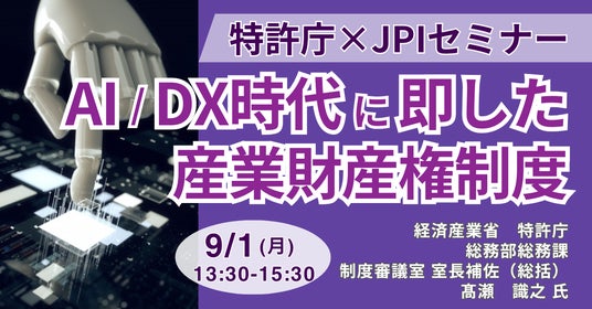 【JPIセミナー】特許庁「AI/DX時代に即した産業財産権制度について」9月1日(月)開催