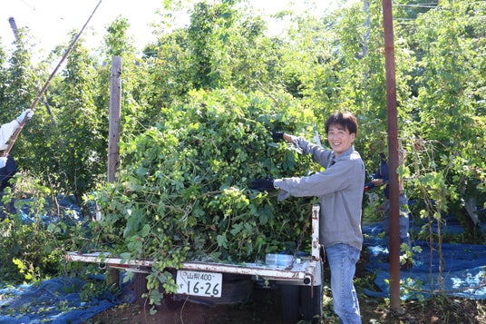ホップ収穫風景(サンクトガーレン代表取締役 岩本)
