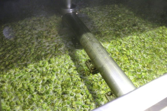 ホップはビールの主原料の1つで、主に香りと苦味のもとになります。通常、ビールに使うホップは夏に収穫したものを長期保存できるように熱乾燥したものです。1年を通じて安定した品質のホップを使うために熱乾燥は欠かせません。しかし、その工程で香りの成分が揮発することも避けられません。