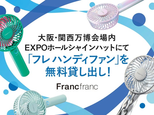 ライフスタイルを提案するインテリアブランド『Francfranc(フランフラン)』は、2025年8月23日(土)より、大阪・関西万博催事会場のEXPOホール「シャインハット」で実施される催事の暑さ対策として、累計販売数500万台を突破※1した持ち歩ける小型扇風機「フレ ハンディファン」の無料貸し出しを実施します。