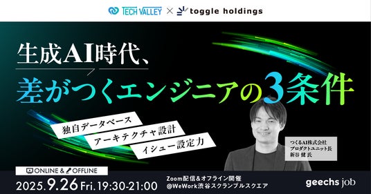 ギークス株式会社(本社:東京都渋谷区、代表取締役CEO:曽根原 稔人、以下ギークス)は、2025年9月26日(金)19:30~21:00にて、ITエンジニアに向けたセミナー「生成AI時代、“差がつくエンジニア”の3条件─独自データベース/アーキテクチャ設計/イシュー設定力」を開催します。