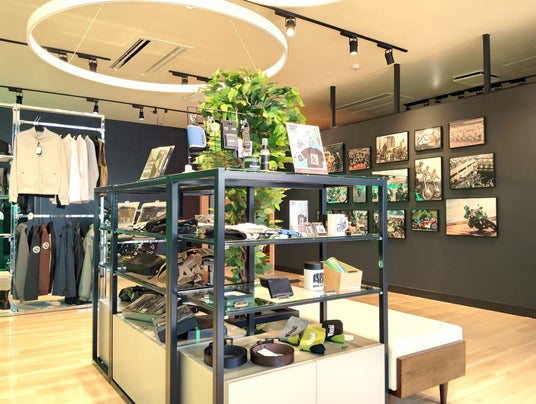 プラザアパレルやグッズは店内のアイランドスペースに展示。実際に手に取って確かめやすいレイアウトです。