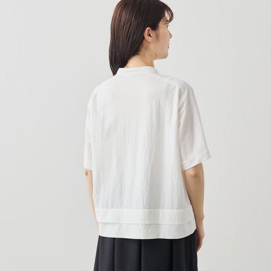 ブラウス全体には、独特なシボ感を生む生地を採用。