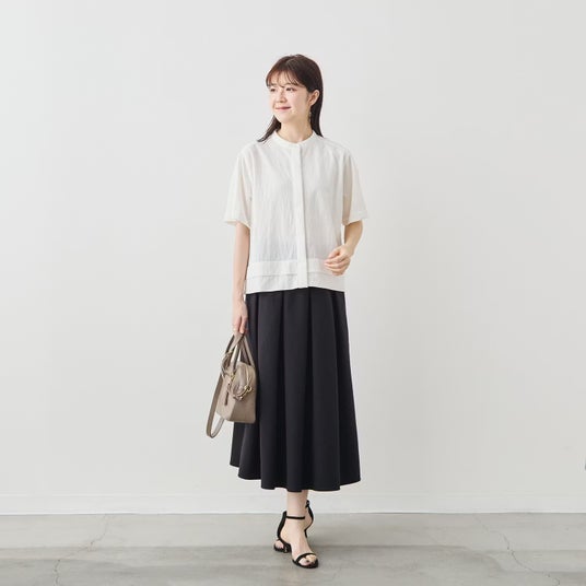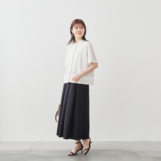 ブラウスをアウトして着てもだらしなく見えず、ウエストインしなくても自然とサマになる。