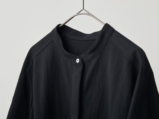 フロントの比翼仕立ては、ボタンを隠してすっきりとした印象に。