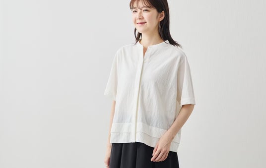 タックデザインの万能ブラウス登場。熊本県の縫製工場「デ・アイ」が手掛けた、スタイルアップも叶える”着こなし自在”なエレガントな1枚