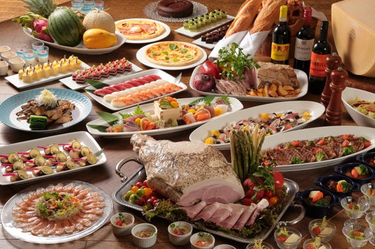 夕食は地産食材を使った、和洋中全70種類のお料理を楽しめるほか、出来立てのお料理を味わえるライブキッチンをご賞味いただけます。