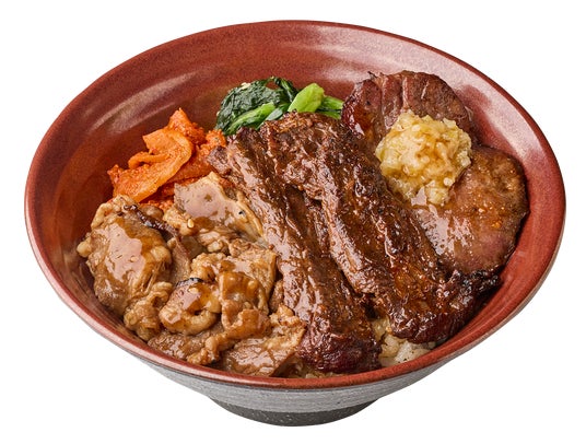 8月7日(木)~17日(日)まで販売をしていました『焼肉3種盛り丼』が非常にご好評をいただき、再販売を望むお声にお応えし、今回の焼肉の日限定で復活販売いたします。牛タン、牛ハラミ、牛カルビという焼肉の人気部位を贅沢に盛りつけた夏の焼肉祭り限定の丼です。