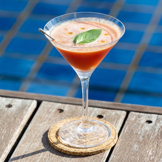 トマトとウォッカのカクテルに、オリーブオイルとスパイスをひとさじ。モッツァレラとバジルをピンに添えた“飲むカプレーゼ”は、スターターにもぴったりで大人の遊び心をくすぐります。