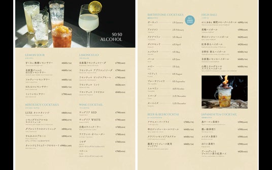 【50:50/フィフティフィフティ】 アルコールとノンアルコールが50対50!!飲める人も飲めない人も楽しめる圧倒的オリジナルカクテルが勢揃い