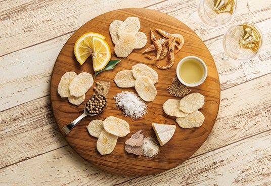 オリーブオイルとほのかな酸味をプラスして洋仕立てに仕上げた薄焼きのしろえびせんべいです。
