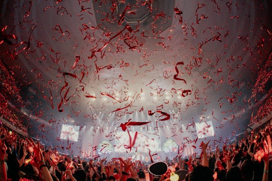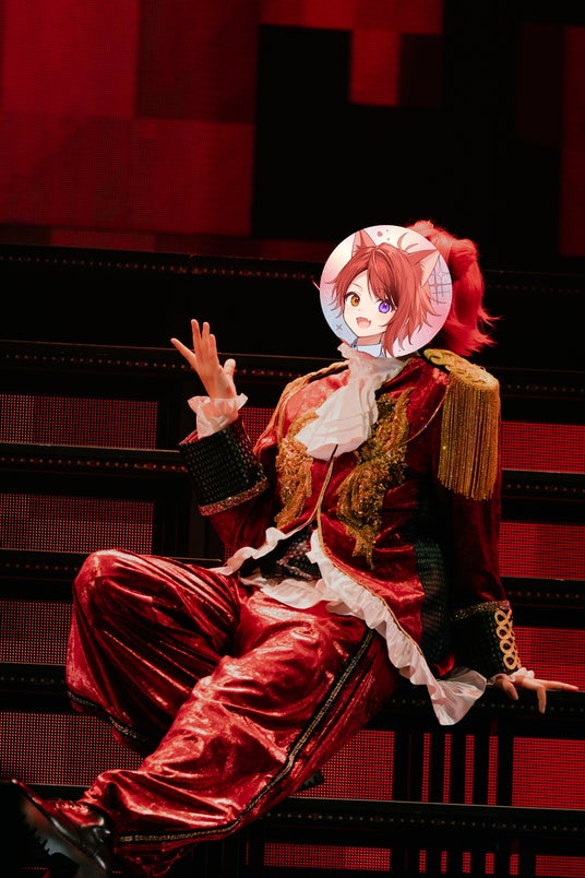 大きなステージを右に左に移動してたくさんファンサしながら歌った「ヒロイン(ハート)キラー」のあとは、「みんなはどのワンダーランドから来たの?」とたずねるなどしてリスナーとの言葉のキャッチボールを楽しむ莉犬。「君たちは俺のこと大好きな妖精さんって聞いたけど……ほかにも人がいそうだね」とにわかに気配を感じると、ジャケットもネクタイもカマーバンドもまさかのディープレッドの王子衣装をまとった、すとぷり内公式ペアの相方・るぅとがサプライズ登場! 「ちこくしてもいいじゃん」で背中合わせになって座りぎゅっと手をつなぐ2人の姿、「僕はこのワンダーランドが大好きだ!」というるぅとの告白に、赤に加えるぅとのイメージカラーである黄色を灯したペンライトが揺れる客席から大歓声が上がる。