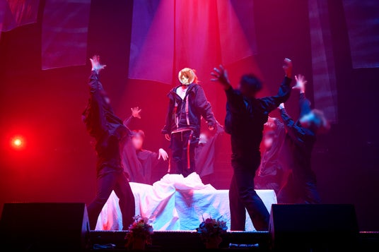 ところが、るぅとが去り際に「夜の森には気をつけてね」と意味深なメッセージを残し、莉犬が「なんだか眠くなってきちゃった……」とつぶやくと、ステージが暗くなり一気にダークモードに。黒衣装の莉犬がベッドの上で白いシーツを感情的に掴み、悪夢の中でもがくように歌った「ウツロ」「ファーストバイト」。先ほどまでの莉犬とは別人かのような悲痛さや苦悶をたたえた歌声、表情、表現に、どうしたって心がかき乱されてしまう。