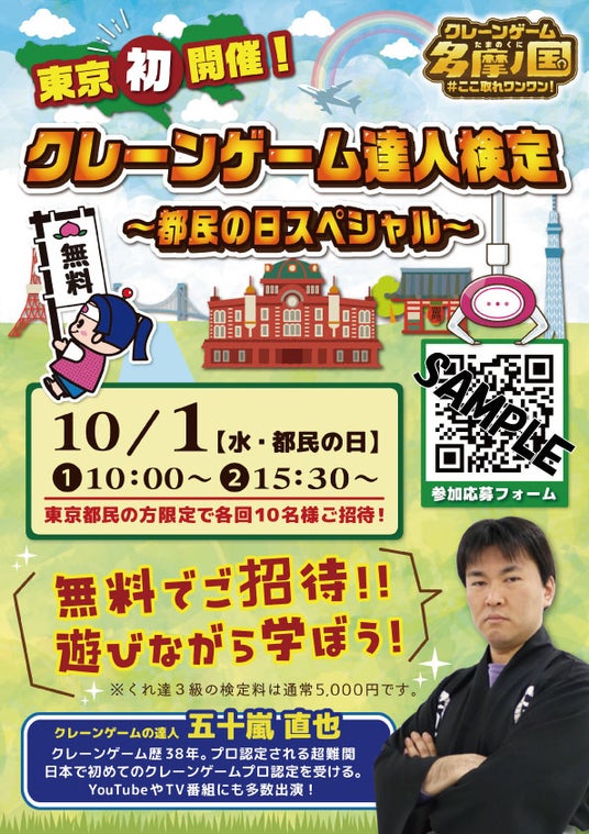 遊びながら資格が取れる「クレーンゲーム達人検定」10月1日“東京都民の日”にエブリデイ多摩ノ国での初開催が決定!東京都在住の方を抽選で無料招待!!