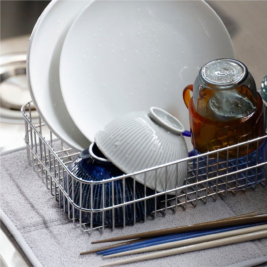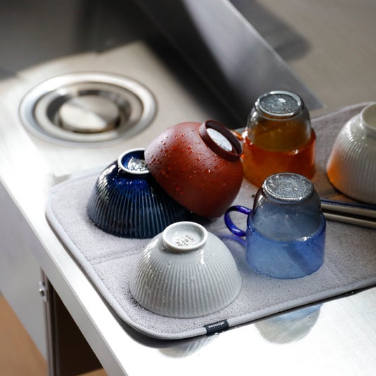 食器を直接置くだけでなく、水切りラックの下に敷いて使うのもおすすめ。