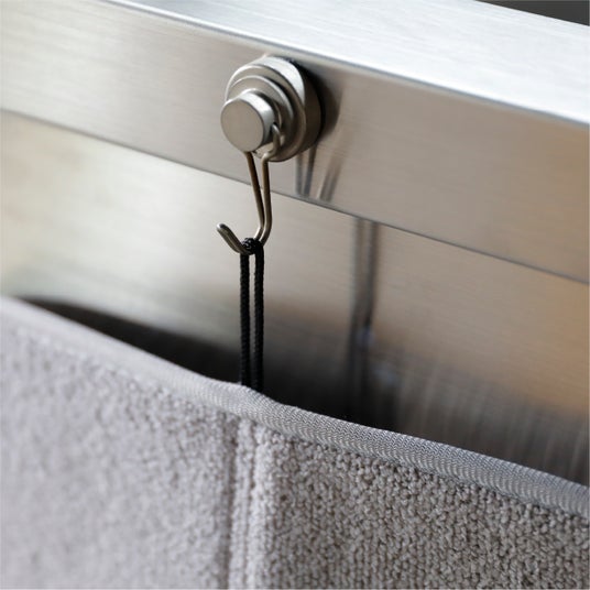 使わないときは折りたたんで省スペース収納。吊り下げ紐付きで乾かしやすい