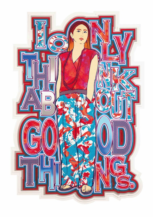 ビビッドな視覚効果によって観る者にダイレクトに届く言葉とイメージ。レイヤー構造一つひとつに鮮やかな色柄を描き、緻密に要素を組み合わせた構造美が示すのは、絵空事の理想郷ではなく、私たちが日々考え、手を動かすことでこそ実現できるユートピア。