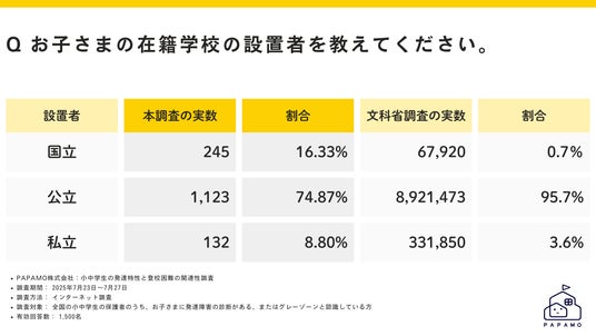 発達障害やグレーゾーンの子どもを持つ全国1,500名の保護者にアンケート 小中学生の発達特性と登校困難の関連性を調査