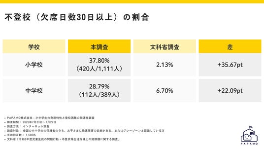発達特性のある子どもの不登校率は全国平均の9.5倍 夏休み明けに多い学校への行き渋りや欠席も61.5%が経験